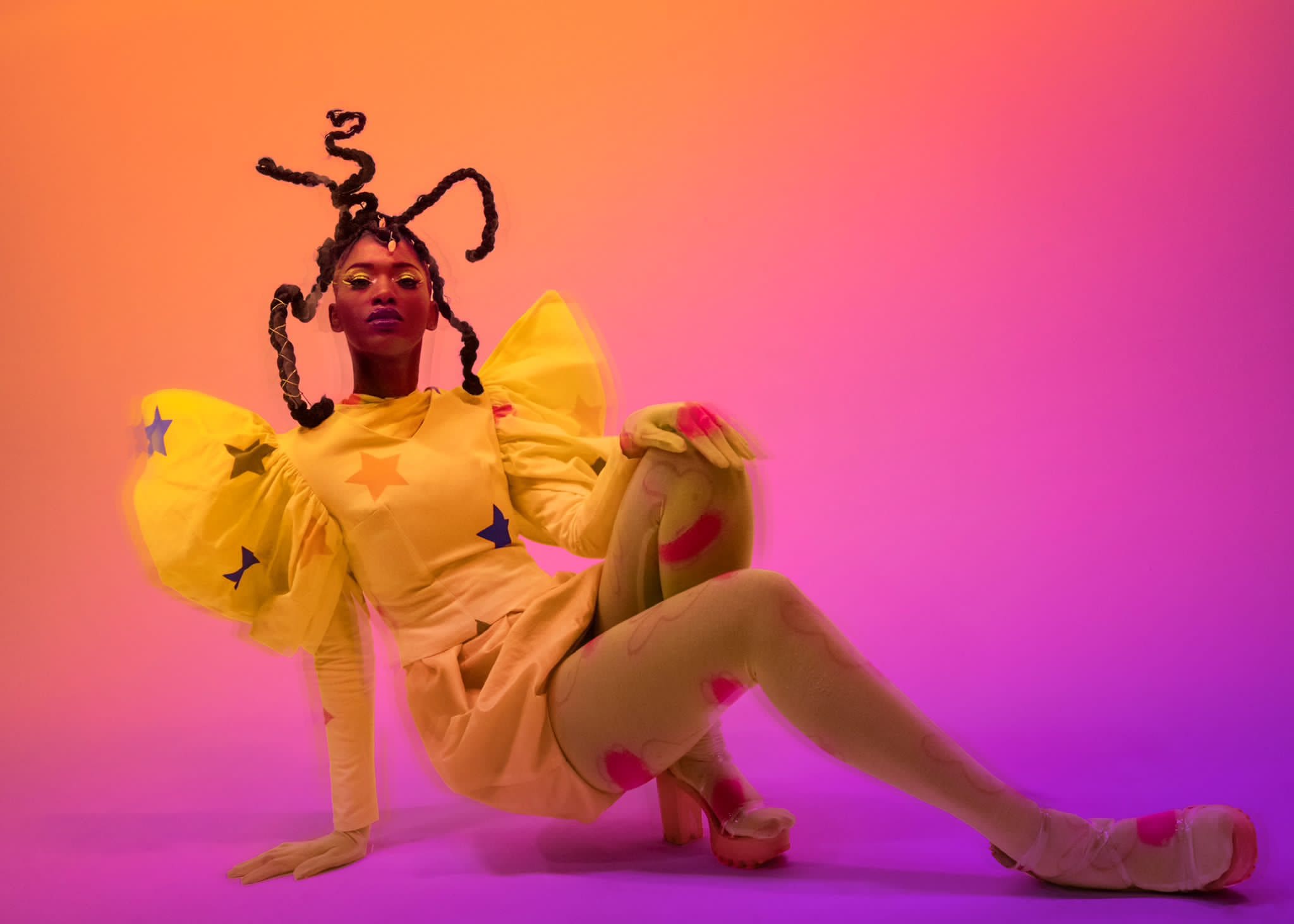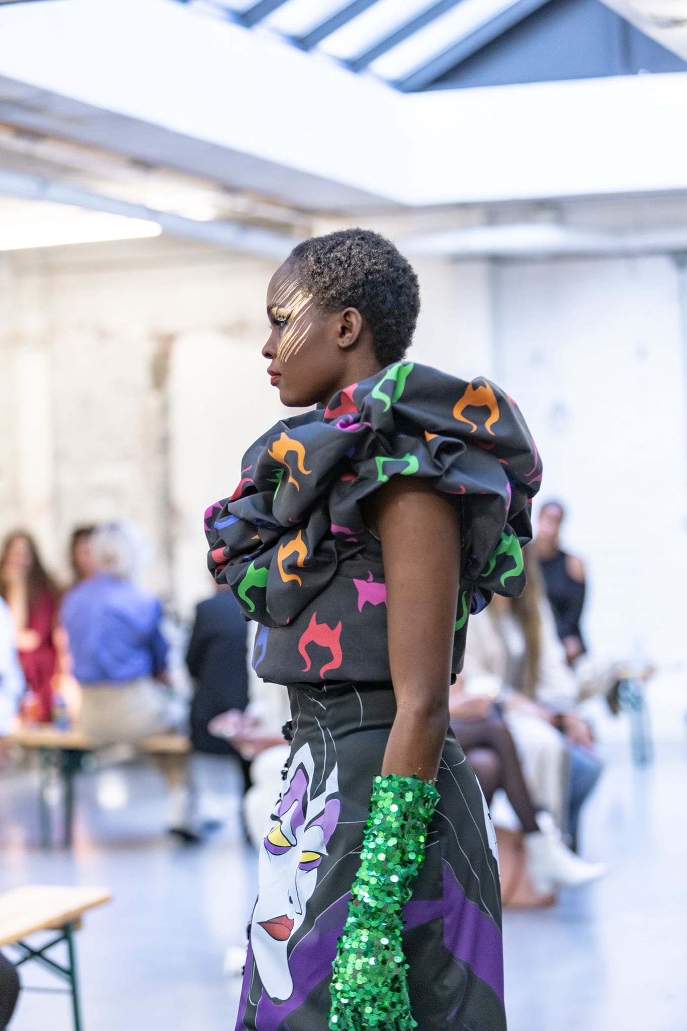 Ons gesprek gaat allereerst over zijn mode account op Instagram. Die staat vol met foto’s van zijn flamboyante ontwerpen. David maakt uitbundige combinaties met kleuren, patronen en materialen. Soms gebruikt hij rekbare stoffen waarmee hij zijn modellen van top tot teen inpakt. Een andere keer maakt hij speelse ontwerpen gebaseerd op de slechteriken uit Disney films. Ik geniet ervan als ik zijn post in mijn feed zie, maar mode is voor David geen hoofdzaak. Het is meer iets wat hij doet omdat hij er veel plezier uithaalt.